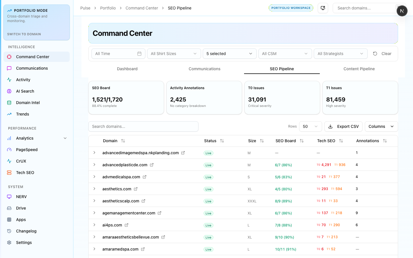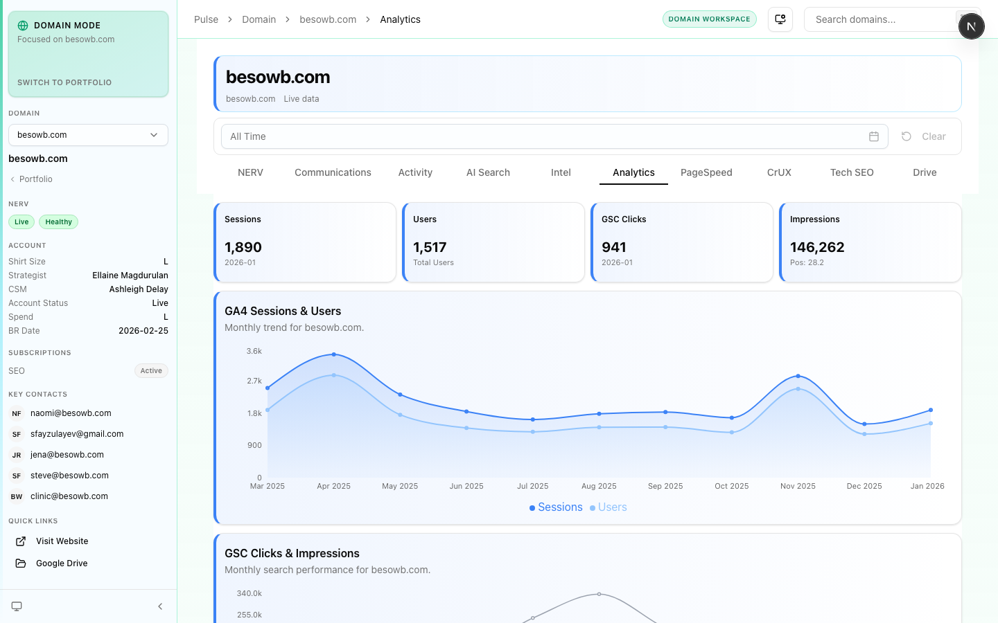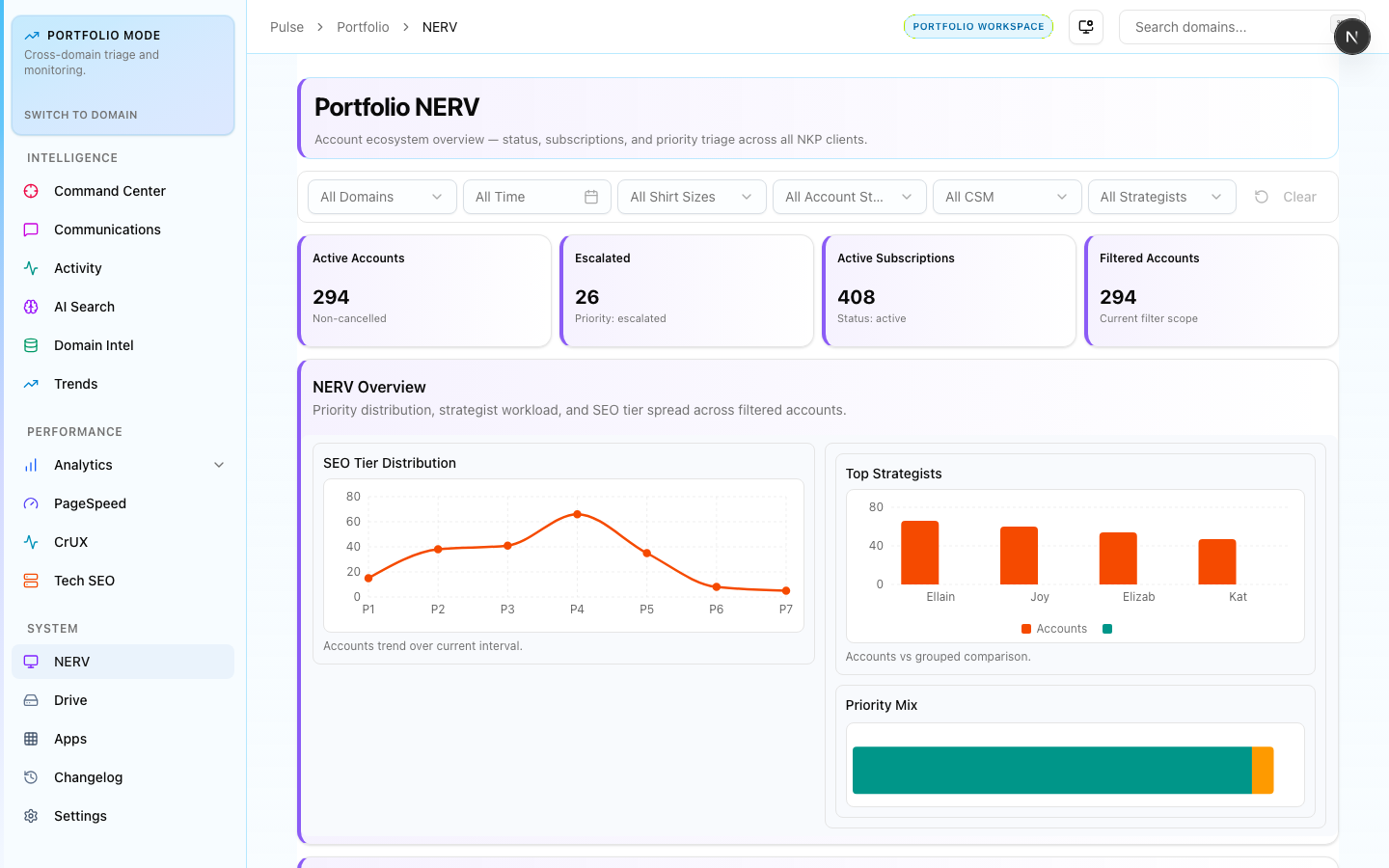 Enterprise SEO analytics platform aggregating data across all NKP client accounts.