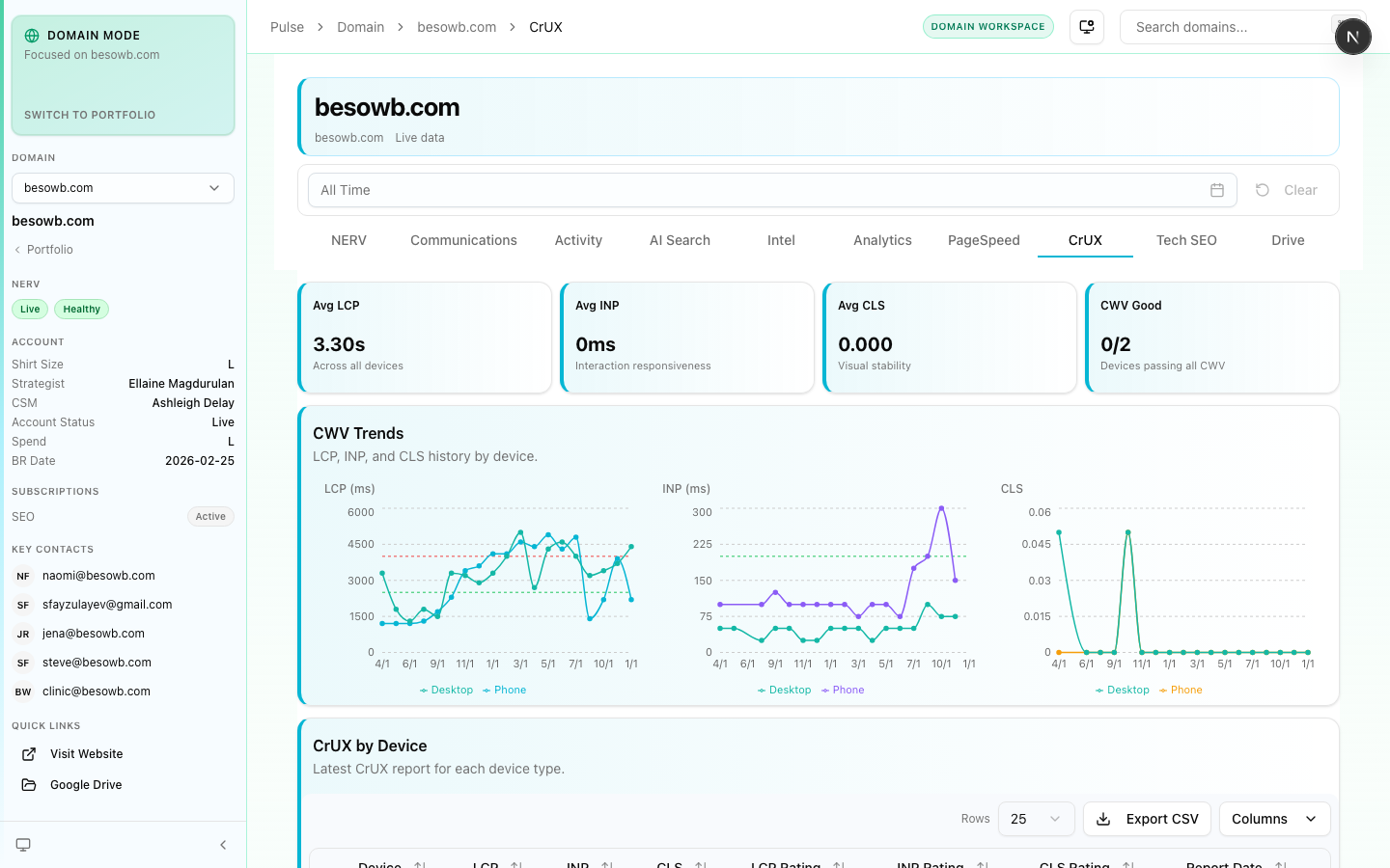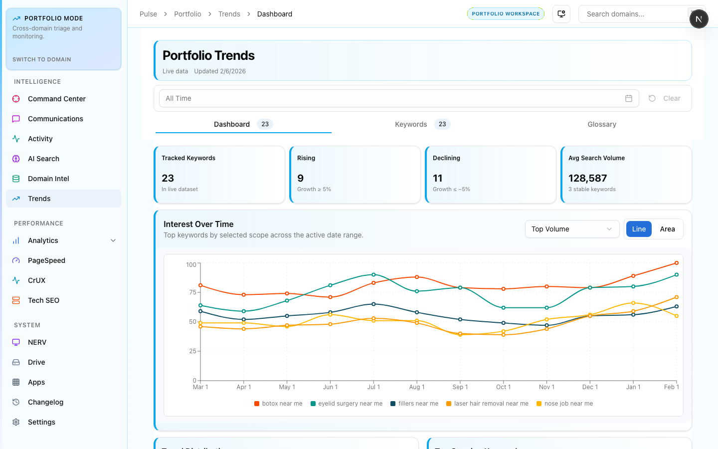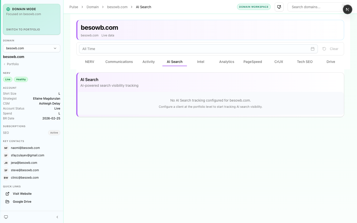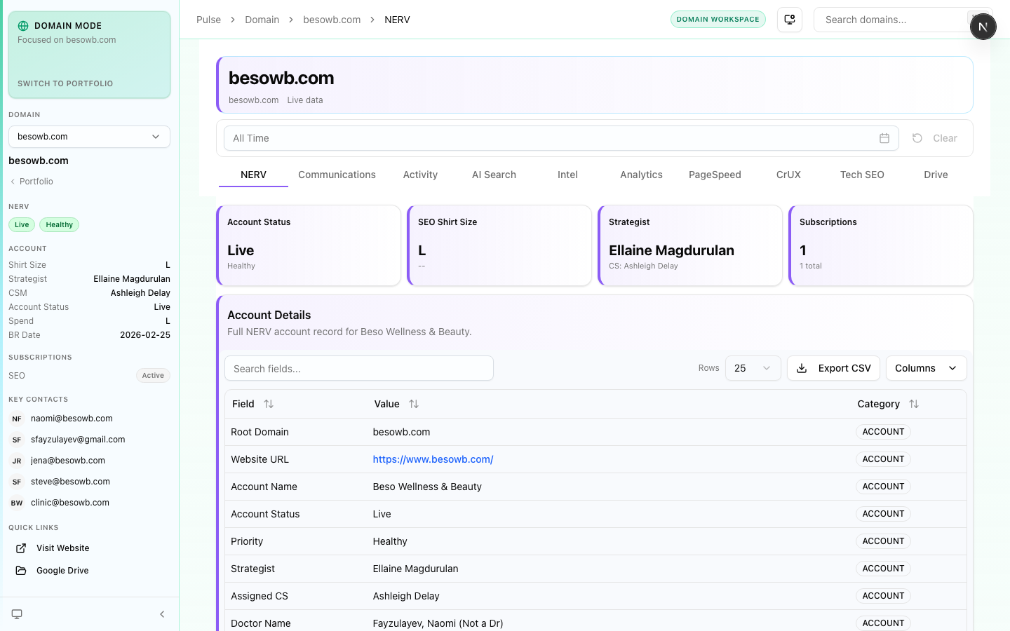 Enterprise SEO analytics platform aggregating data across all NKP client accounts.